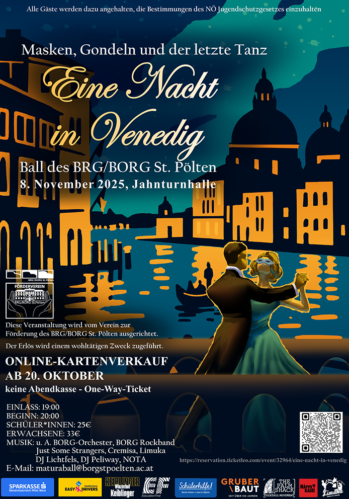 Unter dem Motto "Eine Nacht in Venedig" findet der heurige Maturaball am 8. November in der Jahnturnhalle statt.