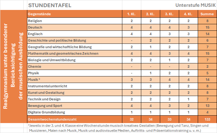 Realgymnasium unter besonderer Berücksichtigung der musischen Ausbildung