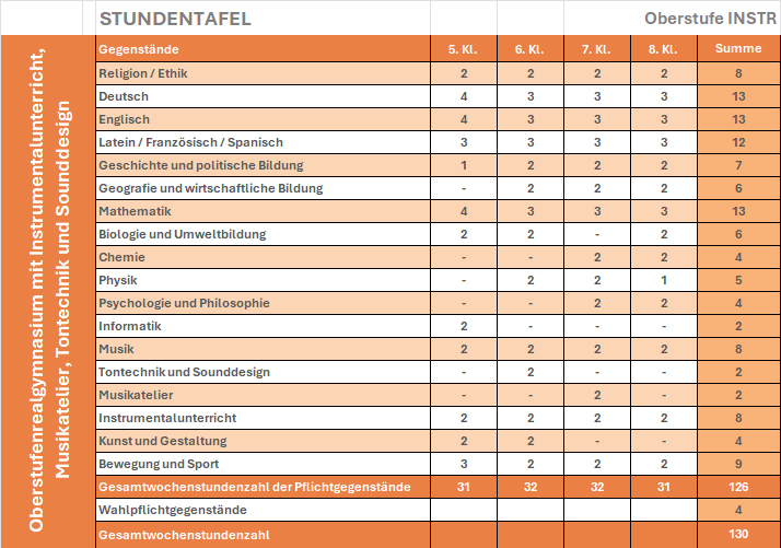 Oberstufenrealgymnasium mit Instrumentalmusik, Musikatelier, Tontechnik und Sounddesign