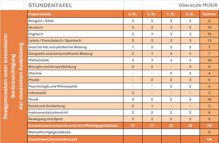 Realgymnasium unter besonderer Berücksichtigung der musischen Ausbildung